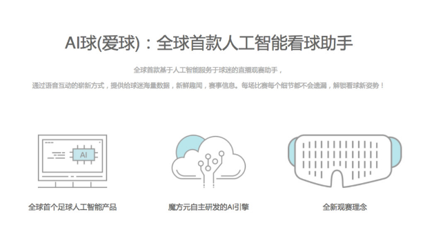 世界杯年是足球创业机构四年一遇的增长红利期,不少机构会借机推出新产品、新服务。魔方元是36氪此前报道的一家体育大数据机构,近期则推出了一款足球聊天机器人“AI球”,将语音识别、NLP等AI技术用于提升看球体验,并已在小米大脑及叮咚音箱上线相关功能。