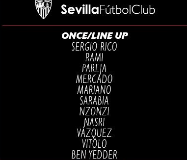 塞维利亚本场全主力出战,球队采用4-1-4-1阵形,本耶德尔坐镇锋线。