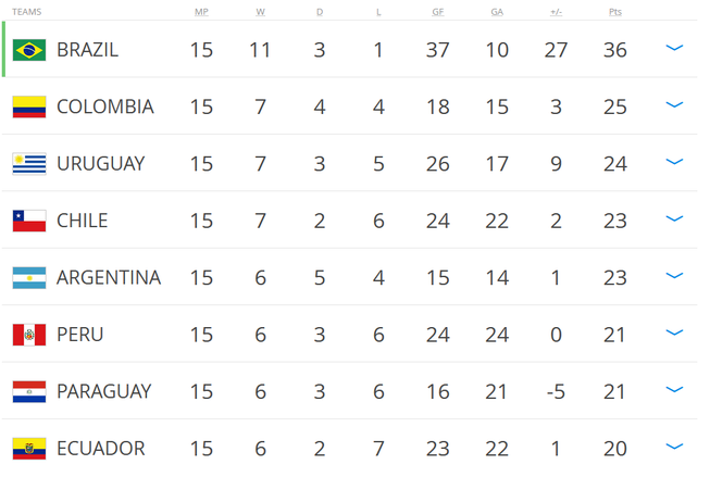 虽然这场比赛没有全取3分,但是阿根廷队的出线形势反倒是更加明朗了。这恐怕要归功于整个南美大陆。首先是他们的死对头巴西,在已经确定出线的情况下,巴西队仍然派出了内马尔、热苏斯等全部主力,在主场2-0战胜了厄瓜多尔。这个结果令阿根廷对厄瓜多尔优势由2分变成了3分。已经出线无望的委内瑞拉队在主场顽强的逼平了哥伦比亚队。让阿根廷与哥伦比亚之间的差距仍然是2分。智利队则在主场意外的0-3输给了巴拉圭队。由于厄瓜多尔队输球,巴拉圭队升到了第6位,目前与阿根廷队的差距仍然是2分。如果本轮哥伦比亚和智利双双取胜,阿根廷恐怕只能保住南美第5了,而这两场比赛的结果,让阿根廷队与智利队的差距,只剩下1个净胜球了。阿根廷队只要在接下来两个主场战胜委内瑞拉和秘鲁两个对手,便可以掌握出线主动权。