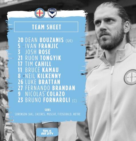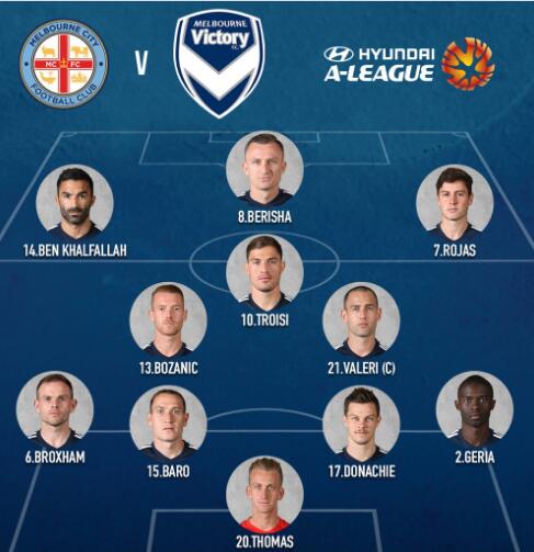 墨尔本胜利本场的首发阵容则延续了上轮击败西悉尼漫步者的阵容,并没有做出任何调整。