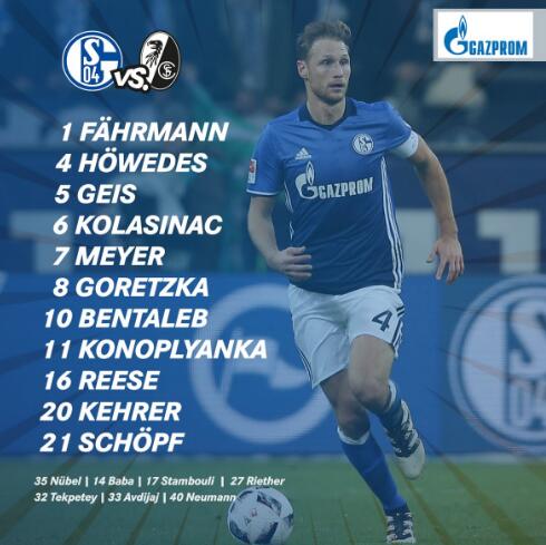 北京时间12月17日晚上22点30分,沙尔克04坐镇主场迎战弗赖堡,赛前沙尔克04公布了本场比赛球队的首发情况。相比上一轮比赛,球队前锋舒波莫廷本场比赛未能进入球队大名单,而另一位中场巴巴本场比赛坐到了替补席。