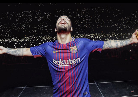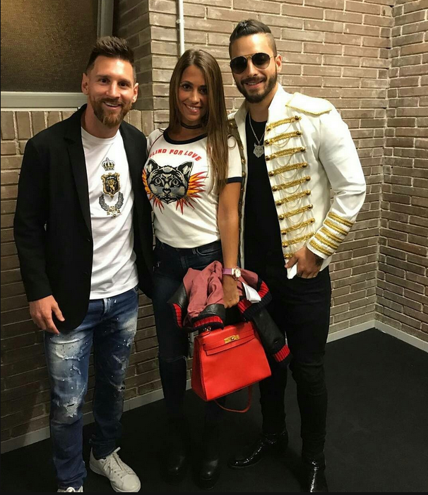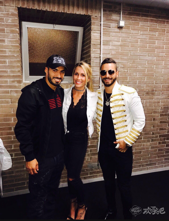 苏亚雷斯也在社交网站上晒出了合影,感谢了Maluma的邀请。