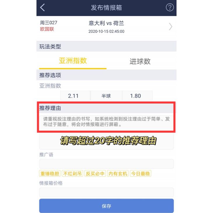 请您在撰写推荐理由时务必达到20字以上,确保情报箱理由充分合理、注重逻辑,若系统检测到推荐理由过于简单、发布过于随意,您的情报箱将被屏蔽。