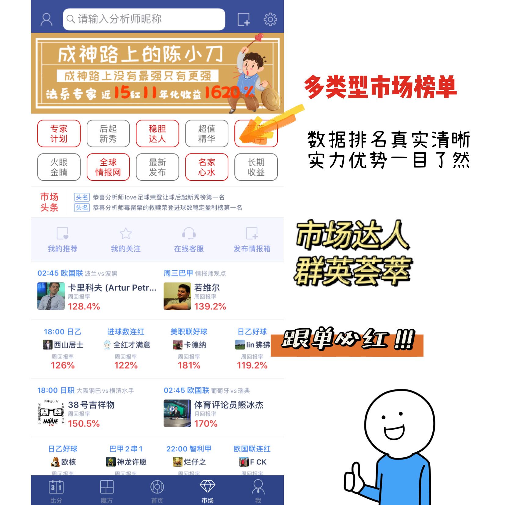 <市场>专栏一直是魔方的金牌板块,诸位市场红人的战绩数据清晰可见一目了然,超高回报率指引魔友顺利通向收米之路!