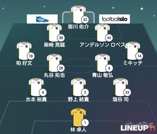 广岛三箭采用擅长的3-6-1阵型,令人意外的是尼日利亚锋线大将乌塔卡(33场19球)未进入大名单,其他位置都是以主力阵容出战。