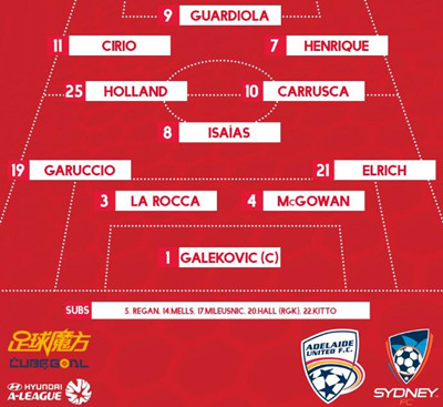 北京时间12月26日16点50分,阿德莱德联将迎来与悉尼FC的比赛,赛前双方球队公布了本场比赛的首发情况。