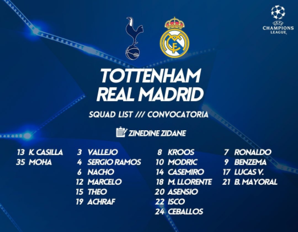 北京时间11月2日,欧冠小组赛展开一场焦点大战,皇马将作客挑战热刺。目前皇马已经公布了本场的大名单,C罗领衔,前热刺球员贝尔因伤缺席。