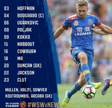 今天下午澳超第第16轮将迎来最后一场对决,西悉尼漫步者将在主场对垒纽卡斯尔喷气机,目前两队首发已经公布。