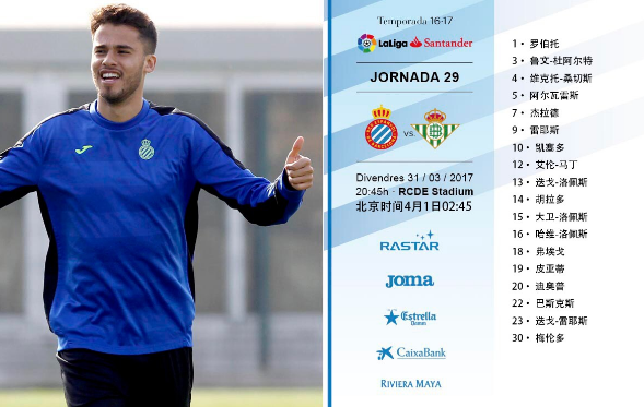 西班牙人VS贝蒂斯 西班牙人大名单:凯塞多雷耶斯领衔