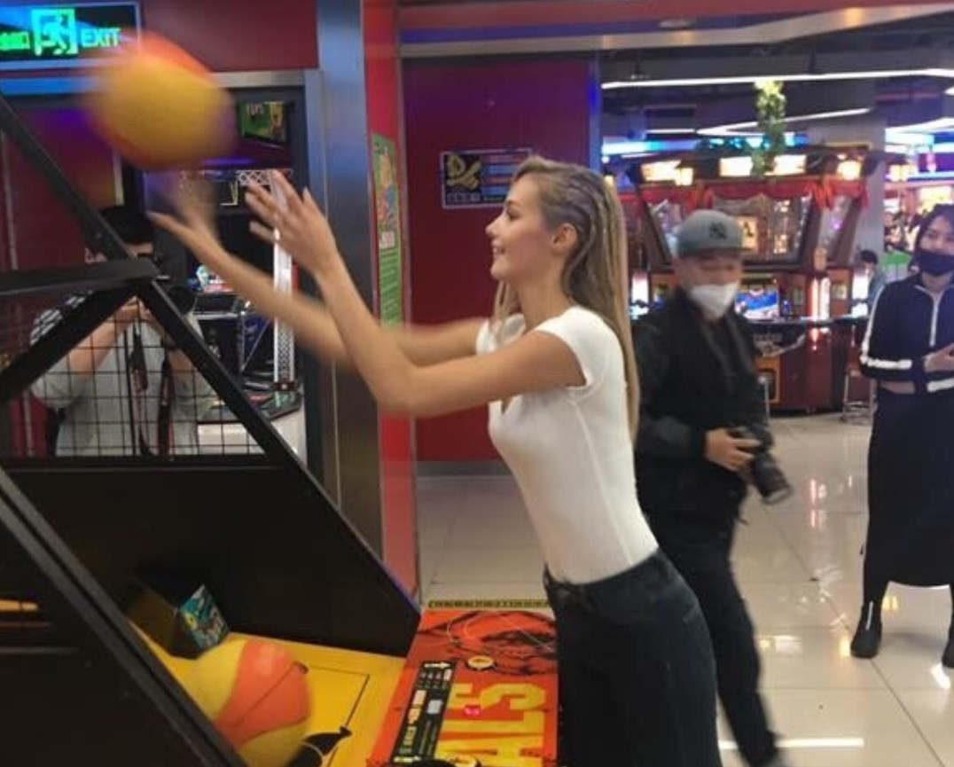 美艳动人,“佩嫂”瓦尔加现身电玩城