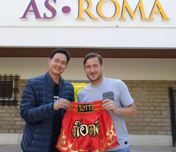 与此同时,来自泰国的球迷送给托蒂一份特殊的礼物,印有“Totti”名字的红色泰拳短裤。